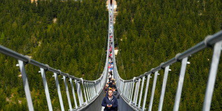 Lukas Kabon / Anadolu Agency via Getty ImagesWorldLongest pedestrian suspension bridge opens in Czech resort