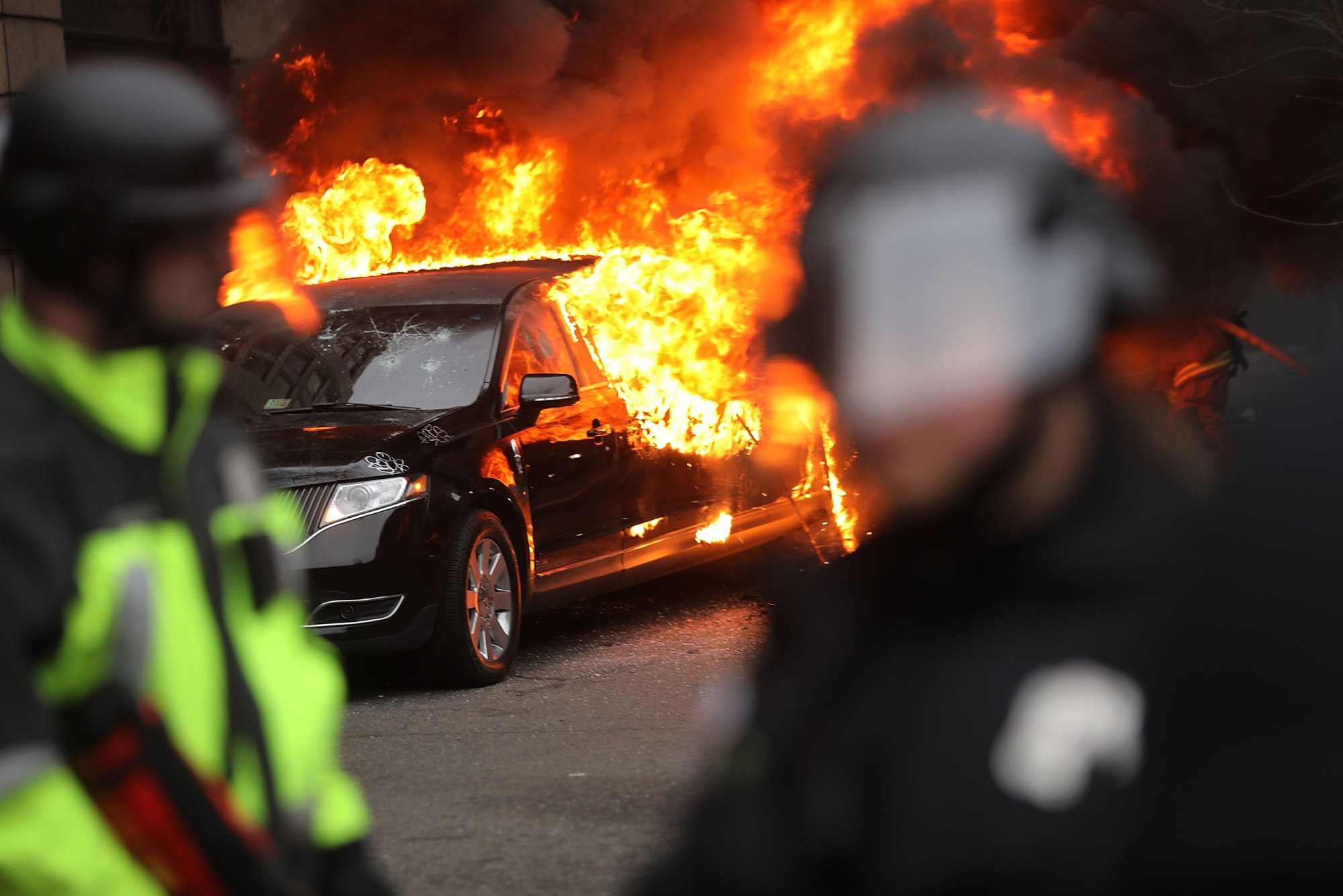 More than 200 people were arrested after the protest, during which several store windows were broken and a parked limo set ablaze. Two group trials ended in defeats for the U.S. Attorney's Office, which was hindered by the fact that most protesters wore similar black clothing and covered their faces.