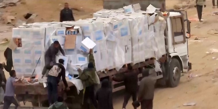Video shows Palestinians in Gaza dragging aid supplies off the backs of trucks 01:37