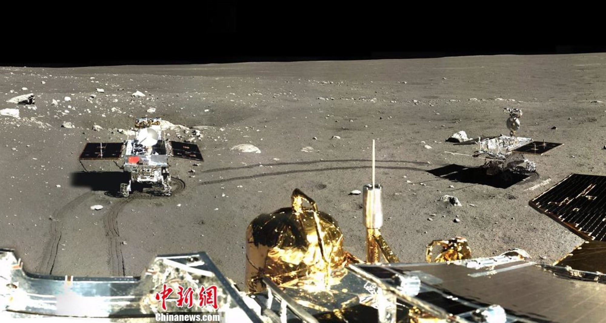 The wide-screen view was assembled from imagery captured by the color camera on the Chang'e 3 lander over the past month, as the six-wheeled robot rolled over the lunar surface. This time-lapse version comes from Ken Kremer, a scientist and science journalist from New Jersey who teamed up with Italian colleague Marco Di Lorenzo.