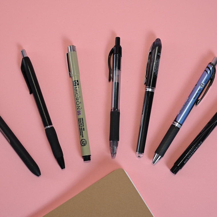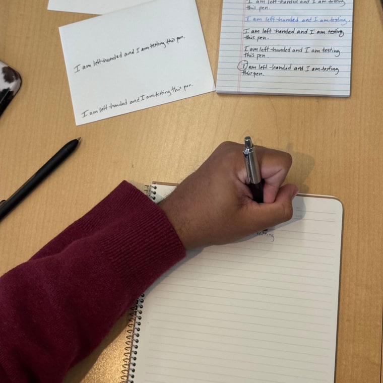 Like most workplaces, NBC Select doesn’t have many lefties, but as the two southpaws on the team, we were willing to dive into the topic a bit more. We set out to find out what actually makes a great, left-handed-friendly pen and how many we’d have to test to find out. We collected a mix of product samples from beloved pen brands and tested 24 pens over the course of two weeks, including options from Sharpie, Paper Mate, Bic, Pilot and Pentel. We also tried out pens from brands outside of the office supply industry who also happen to sell promising pens, like Muji and Prismacolor.