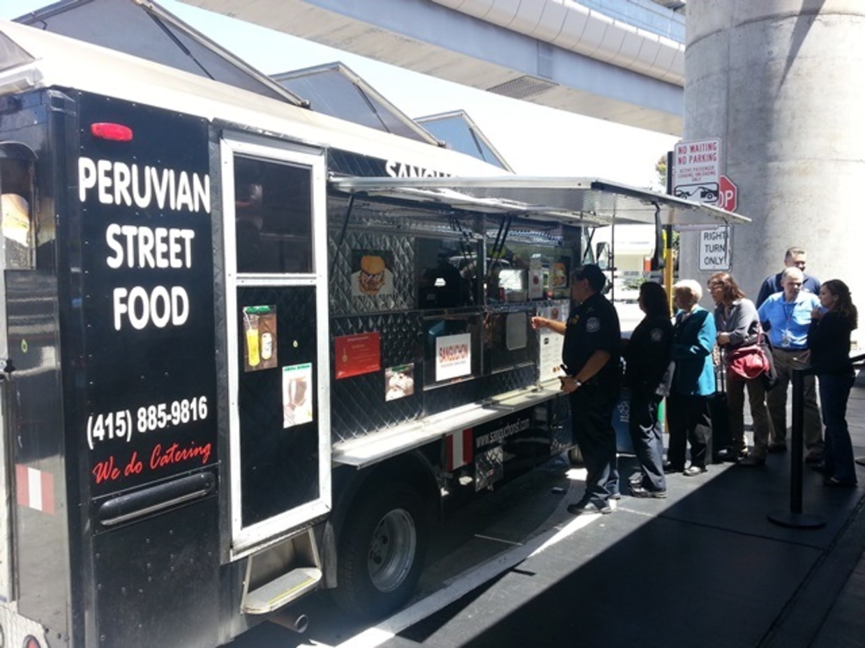 At San Francisco International Airport, three food trucks park outside Terminal 1 each Thursday, drawing customers not only from passengers and their greeters, but from airport employees as well.