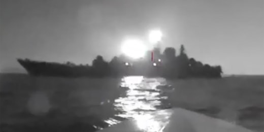 00:53Video shows Ukrainian sea drone striking Russian warship