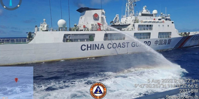 China water-cannons Philippine military ship in the South China Sea